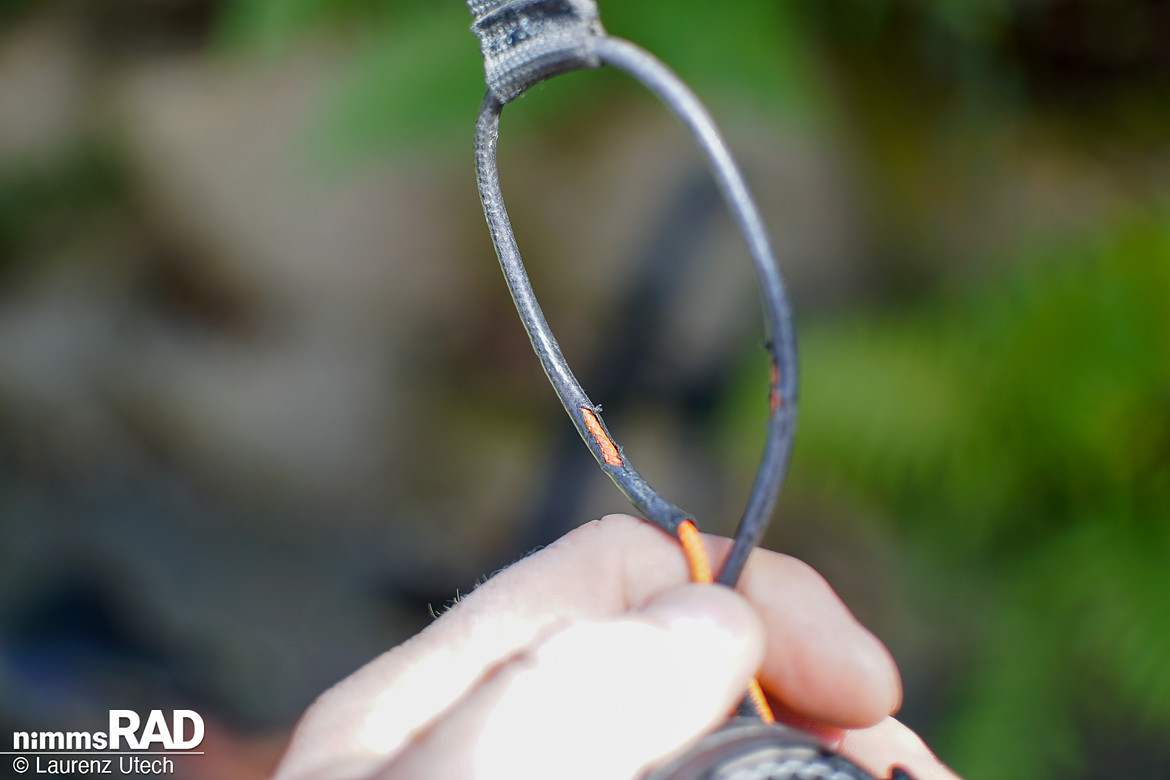 Leichte Abscheuerungen an der Außenschale entstehen durch Kontakt mit den Sattelstreben, die Funktion des Kommit Zugsystems bleibt davon unberührt.