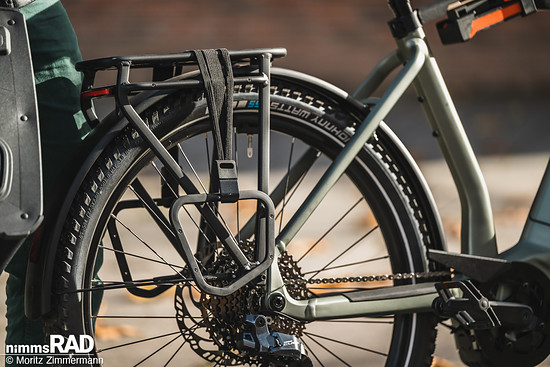 Im urbanen Alltag macht das Urban-Cargo-System eine hervorragende Figur: Der Holster sitzt stabil am Gepäckträger, während der Packsack auch bei holprigen Stadtwegen sicher an seinem Platz bleibt.