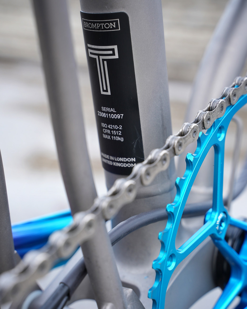 Als Ausgangsbasis dient ein Brompton T-Line Faltradrahmen. im Album Twisted Wheels Brompton