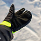 Texturierter Silikonaufdruck in der Handinnenfläche sorgt für sicheren Halt, das Griffgefühl ist durch das Trigger-Konzept jedoch ungewohnt. im Album Winter-Fahrradhandschuhe Vergleichstest