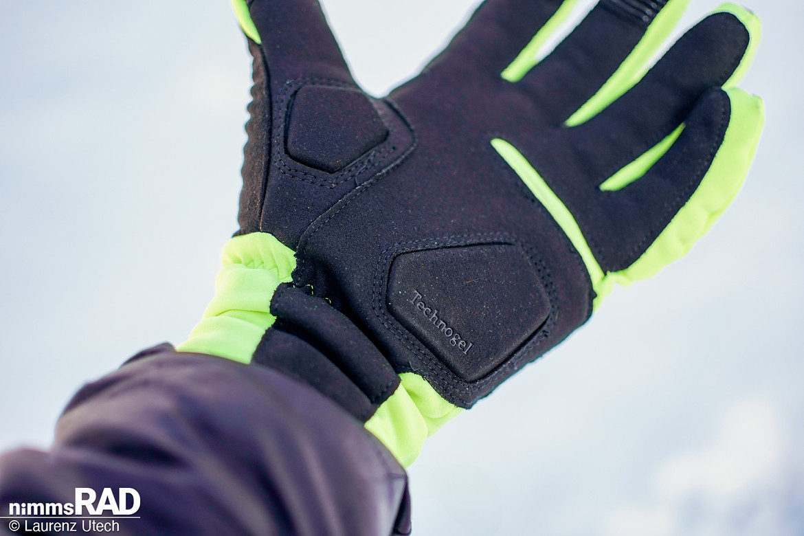 Technogel-Einsätze in der Handfläche sollen Vibrationen dämpfen, beeinträchtigen aber das direkte Gefühl am Lenker spürbar. im Album Winter-Fahrradhandschuhe Vergleichstest